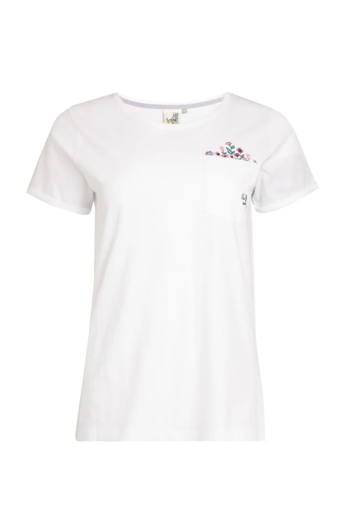 Stop and smell the roses in our gorgeous Cloe Organic Embroidered Graphic T-Shirt. This super soft tee features beautiful floral embroidery on the pocket and a pop of lilac on the side vents and neck tape.