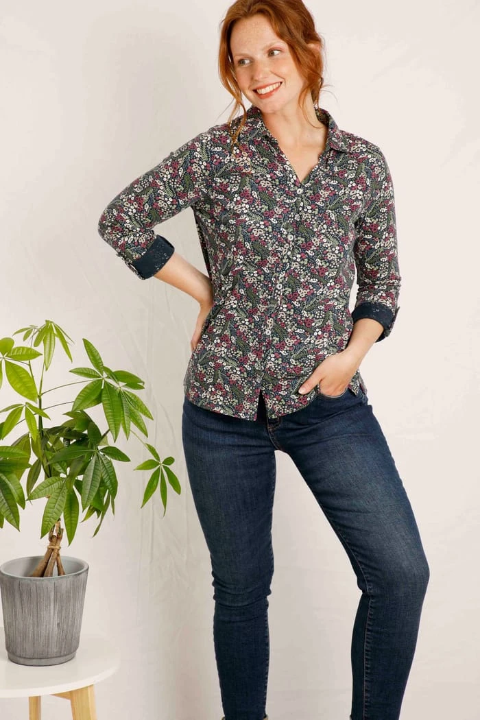 Add some fun and a pop of print to your everyday looks with the Ginny Organic Jersey Shirt. Featuring seashell buttons, a chest pocket and adjustable sleeves, you’ll love wearing the Ginny.