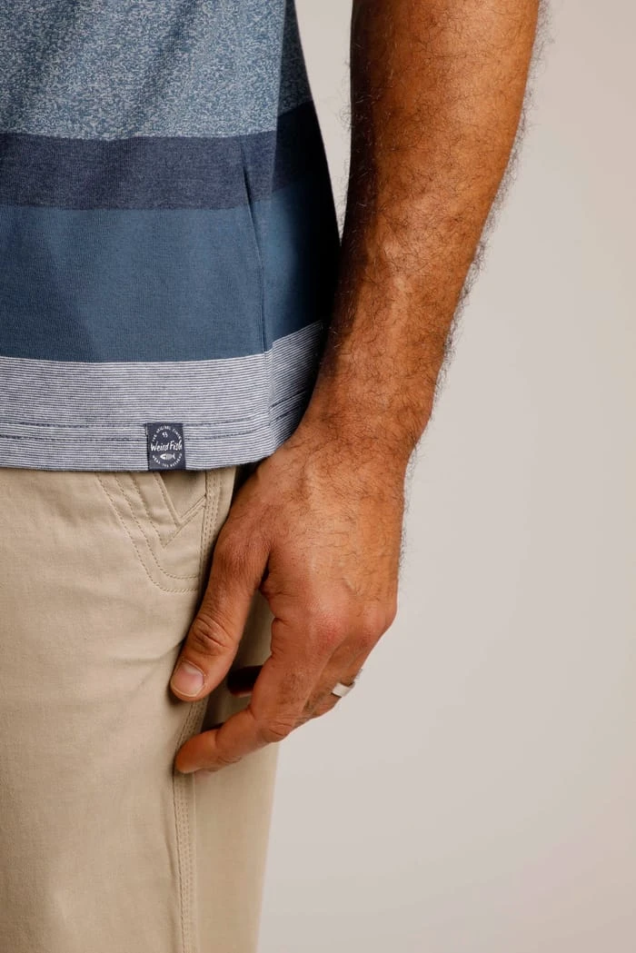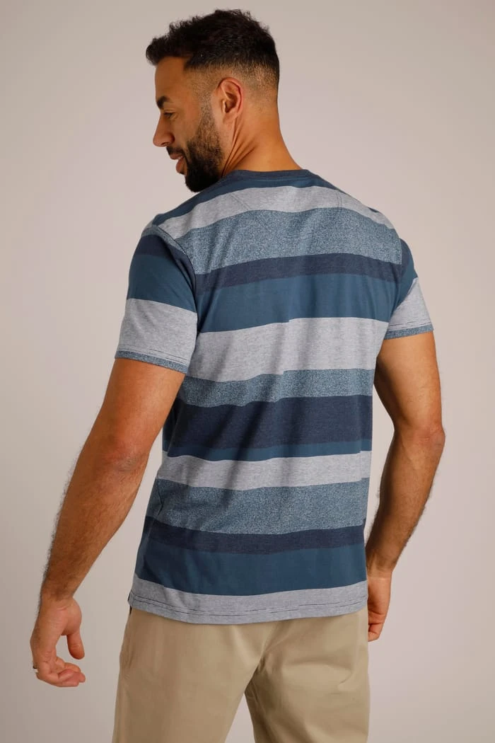 Super soft and perfectly casual, the Harwood Stripe T-Shirt is an excellent choice this season. Featuring a crew neck, this striped tee is easy to wear. A blend of narrow and wide stripes, the Harwood is available in two shades of blue and looks great with a pair of jeans or shorts.