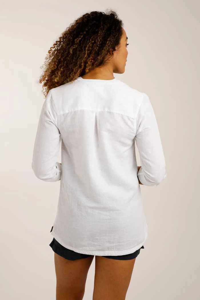 A wonderfully versatile holiday piece, this oversized, smock-style longline linen shirt can be worn as a beach cover up, a casual shirt teamed with our laid back cropped linen trousers, or a smart evening top for balmy nights. Featuring a classic cut, rolled sleeves and made from a beautiful rich, and high quality fabric, the Mathilda longline shirt is the perfect piece to wear this summer.