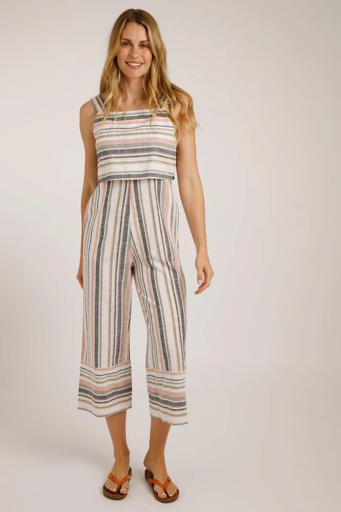 A seaside inspired striped jumpsuit is perfect for summer. The Otavia will have you holiday ready in no time, simply pair with sandals and be on your way! Made from organic cotton, our striped organic cotton jumpsuit will be a firm favourite this season.