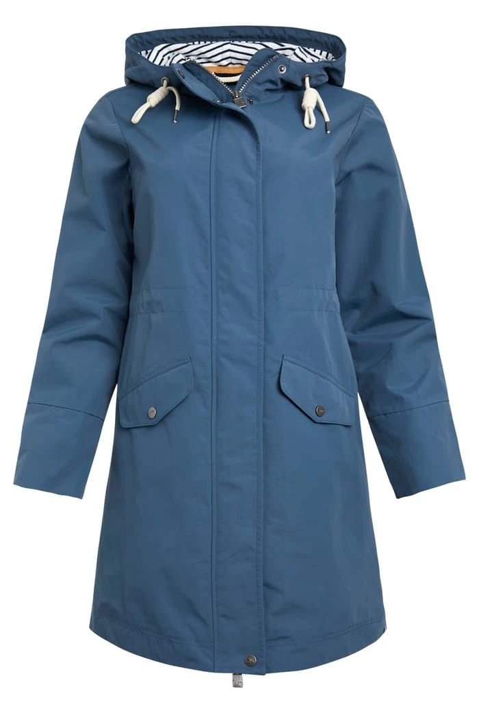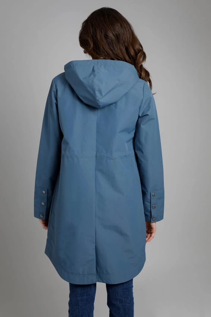 A comfortable and practical waterproof jacket great for those unpredictable rainy days. The Sanne is available in two stunning colours packed full of features that make this longline waterproof jacket the perfect companion on your daily outings. Made from recycled materials and organic cotton and featuring two pockets, a hood with drawcords and a zip fastening with popper storm flap, this longline waterproof is a must-have!
