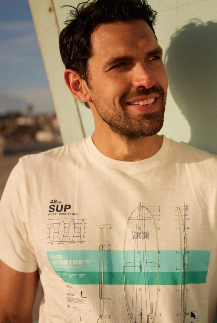 Showcase your love for watersports with our Sup School Organic Embroidered T-Shirt. Featuring the dimensions of a SUP (paddleboard) and embroidery detailing, just pair with shorts and flip flops for your adventures on the water this season.