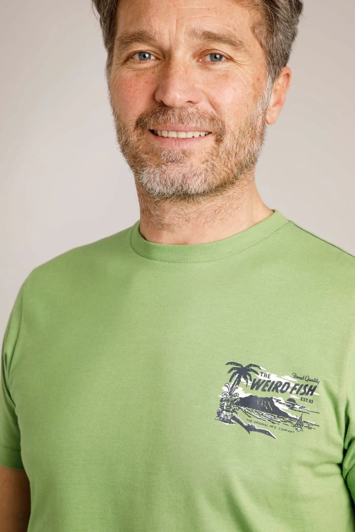 Holiday mode: on! We’ve captured the spirit of summer with our Tiki Graphic T-Shirt. This tee features a detailed Hawaiian setting as a front and back print and is bound to impress at a barbecue this season.