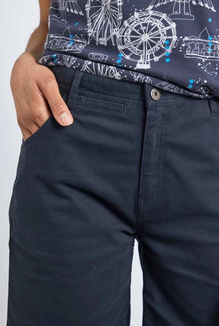 These classic Bermuda shorts are a new take on the classic style. We love pushing the envelope with our everyday styles, so these longline organic cotton bermuda shorts were right up our alley! The Vittoria longline Bermuda shorts are designed to keep you cool and give you a little extra coverage. We love our organic cotton Bermuda Shorts because they are comfortable, fashionable and classic in design. Perfect to wear this Spring and Summer with a classic tee, these longline organic cotton shorts are our go-to trousers this season.